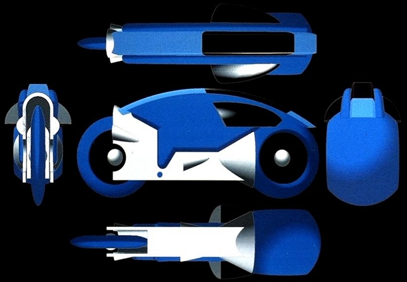"One of the factors that influenced me was the fact that MAGI's SynthaVision system did not use polygons. Rather, everything was built from boolean combinations of mathematical primitives, such as ellipsoids, cylinders, truncated cones. As you can see in the illustration, the lightcycles are created by adding and subtracting simple solid mathematical shapes."